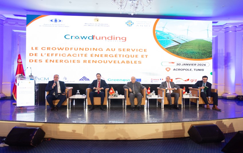 Le 30 janvier 2026, sous le patronage de Madame la Ministre de l’Industrie, des Mines et de l’Énergie, l’Agence de Promotion de l’Industrie et de l’Innovation (APII), en partenariat avec l’Agence Nationale pour la Maîtrise de l’Énergie (ANME), le CITET, le projet Greenov’i (Expertise France) et le projet TETA (GIZ), a organisé un atelier national intitulé « Le Crowdfunding au service de l’efficacité énergétique et des énergies renouvelables ».